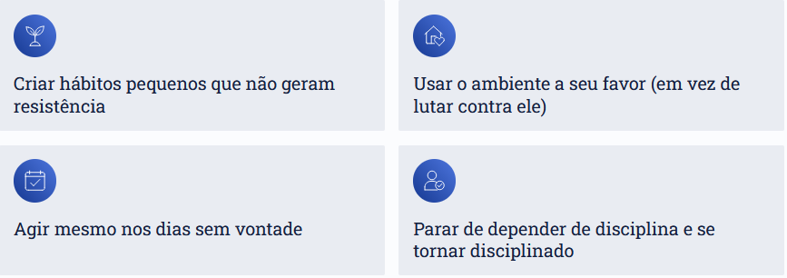 • Você aprende a usar um gatilho mental diário que faz seu cérebro associar ação com alívio — e não mais com esforço ou sofrimento.